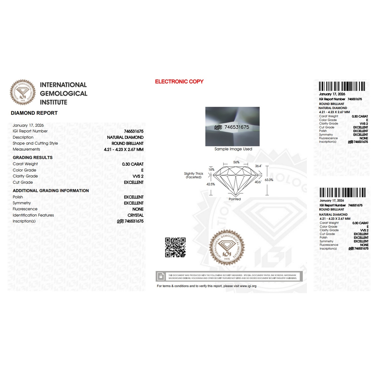 Diamant Certifié IGI 0.30 CT E VVS2