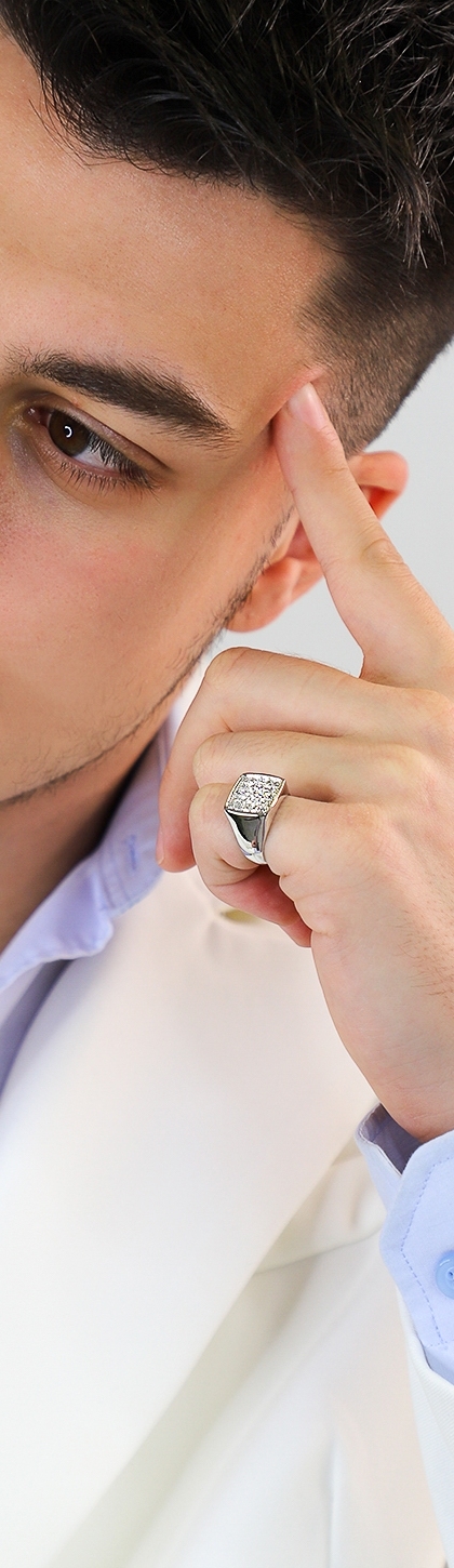 Chevalière homme carrée avec pavé de diamants et or blanc 18k