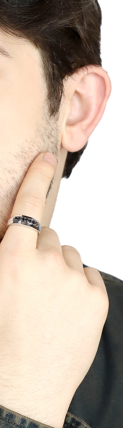 Imposant et raffiné, cet anneau pour homme en or blanc 18k est orné de sept diamants noirs, ajoutant une touche audacieuse et élégante à votre style. Un choix moderne et sophistiqué pour un look unique.