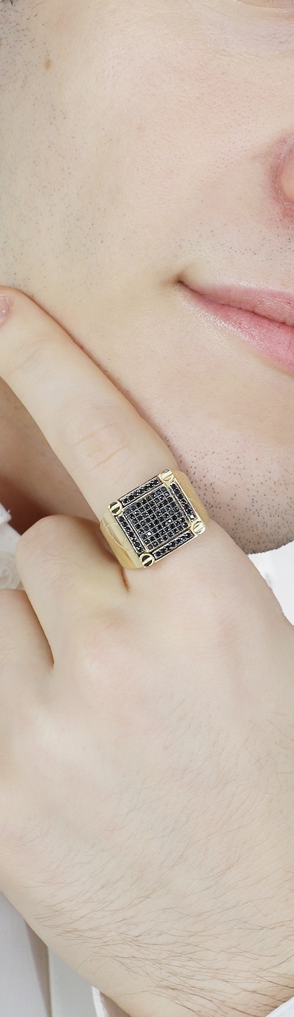 Bague masculine en or jaune 18k, sertie de zircones noires pour un style audacieux et raffiné. Un bijou élégant, parfait pour une touche de caractère.
