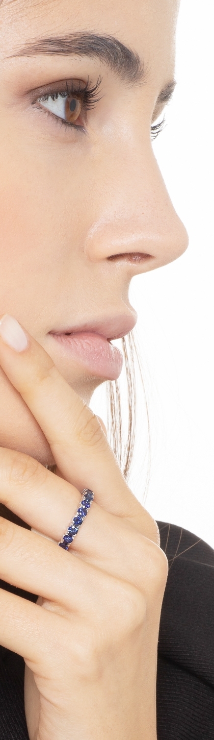 Alliance Rivière en or blanc 18k avec saphir bleu