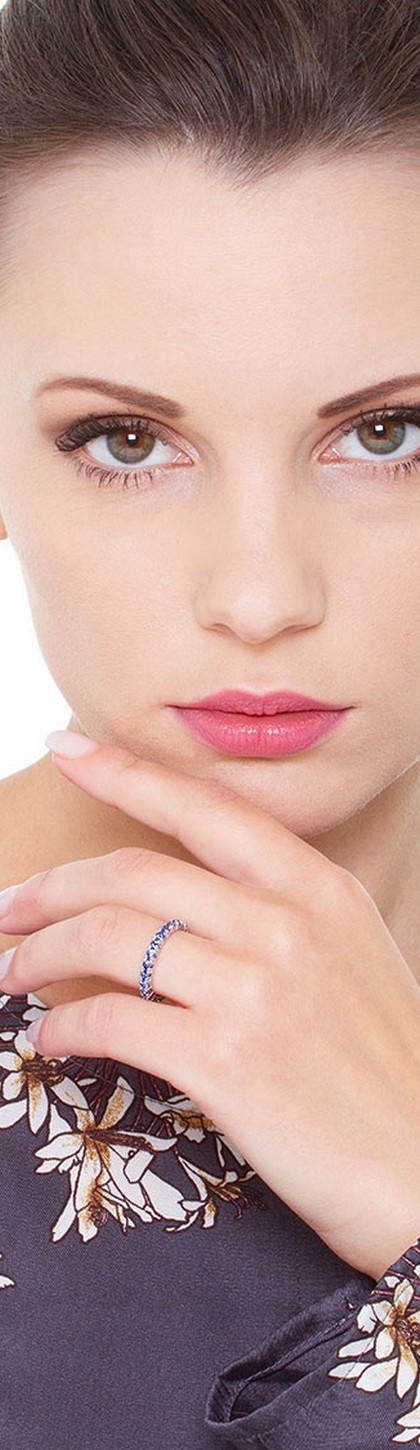 Alliance rivière en or blanc 18k avec saphirs bleu