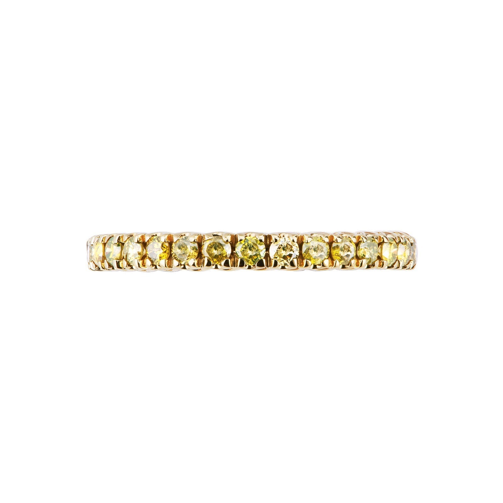 Bague eternity en Or Jaune 18k sertie de diamants jaunes taille brillant montés à griffes, qui mettent en valeur la luminosité et la chaleur de chaque pierre en créant une ligne continue et élégante autour du doigt ; le carat total peut varier selon la taille de la bague.