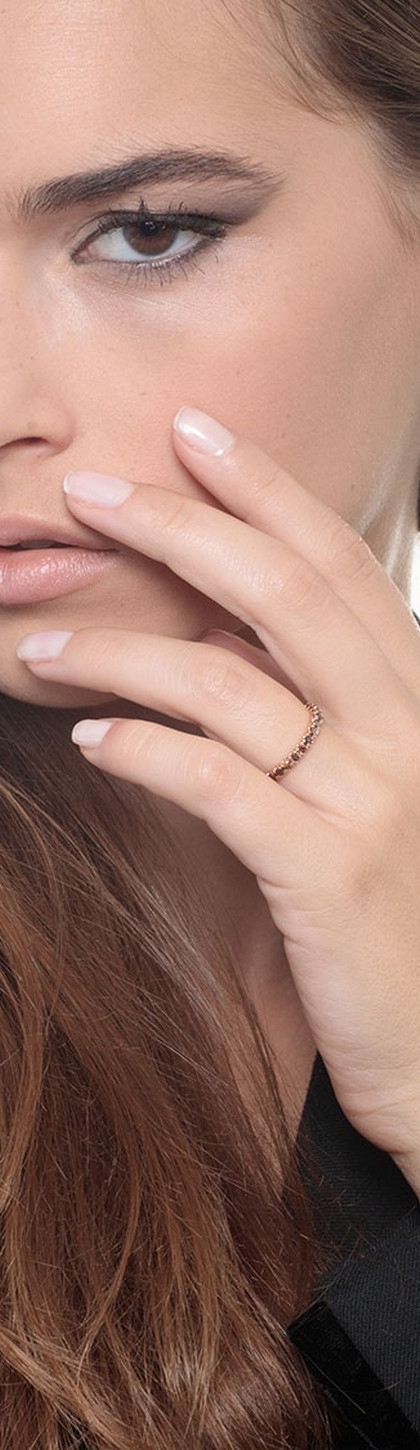 Bague d’éternité à griffes en Or Rose 18k et diamants couleur cognac