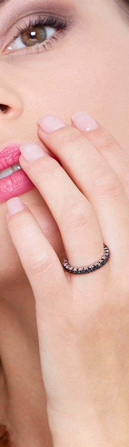 Bague Eternity à griffes en or blanc 18k avec diamants noirs