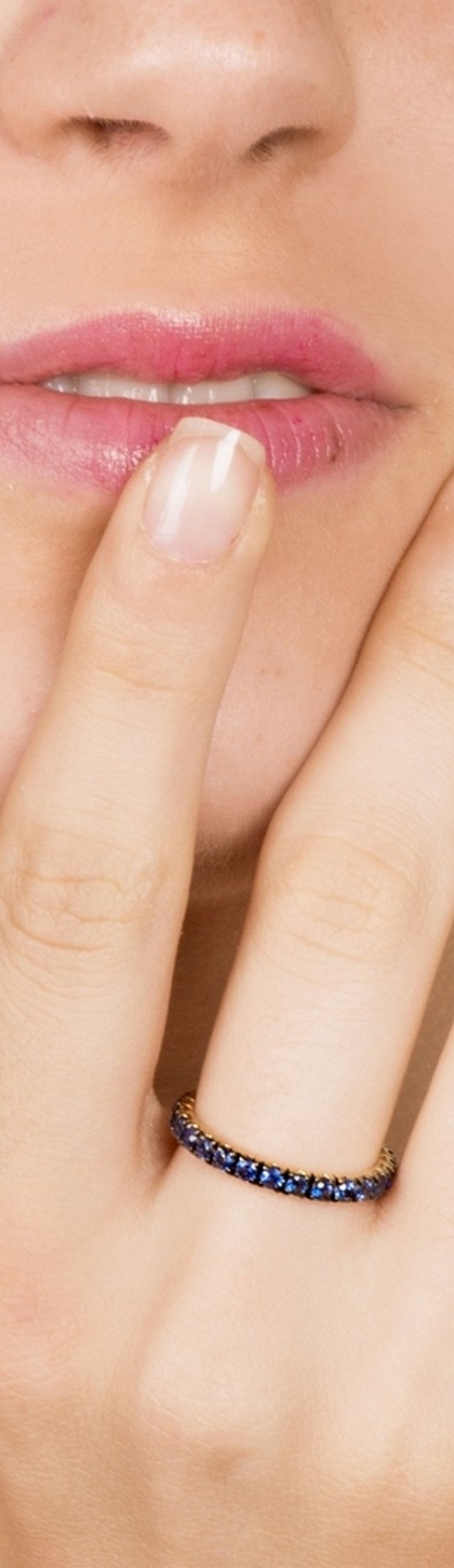 Bague eternity en Or Jaune 18k avec saphirs bleus brunis
