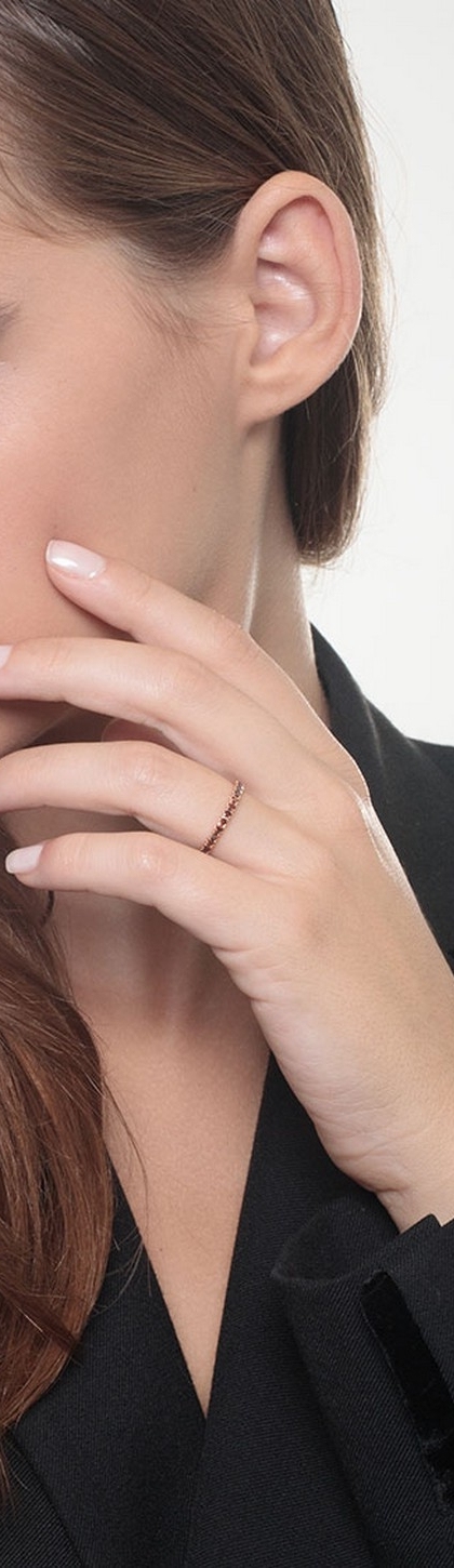 Bague Eternity en or rose 18k avec diamants cognac