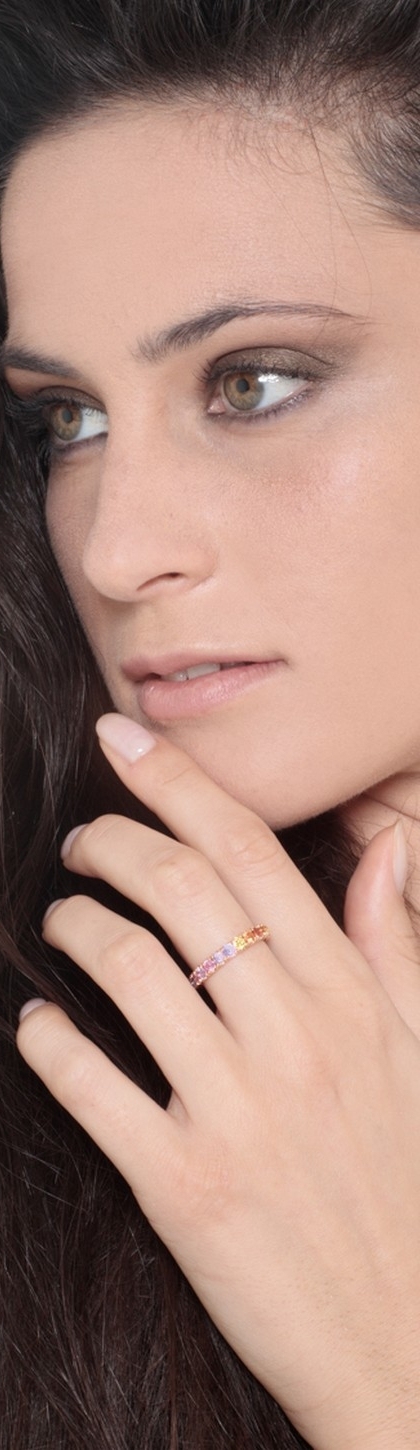 Bague Eternity en or rose 18k sertie de saphirs multicolores