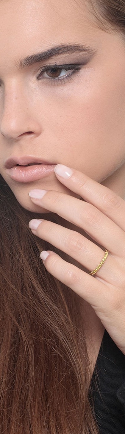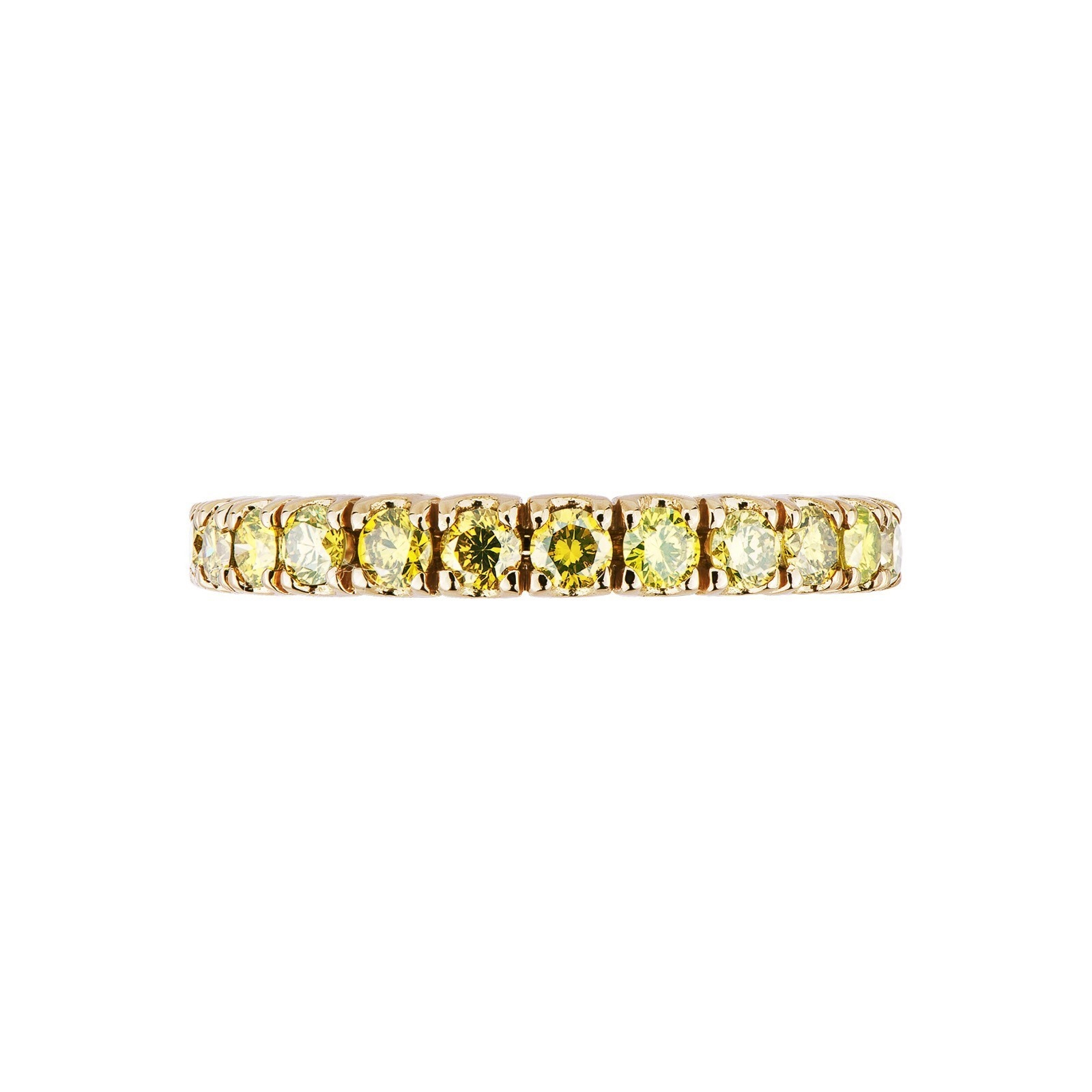 Bague eternity en Or Jaune 18k sertie de diamants jaunes taille brillant montés à griffes, une monture qui sublime la luminosité et la chaleur de chaque pierre en créant une ligne continue et élégante autour du doigt ; le carat total peut varier en fonction de la taille de la bague.