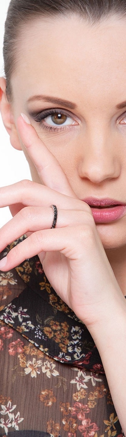 Bague éternité en or blanc 18k avec diamants noirs et griffes brunies