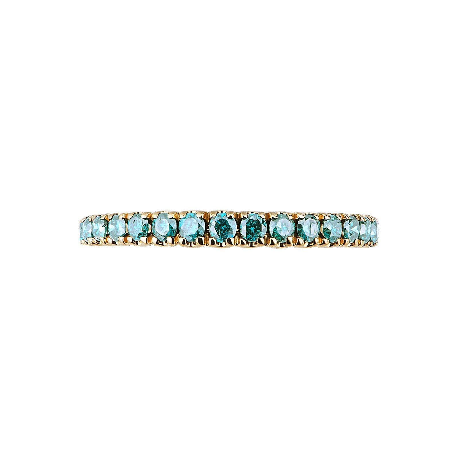 Bague Éternité griffes en or jaune 18k avec diamants bleus