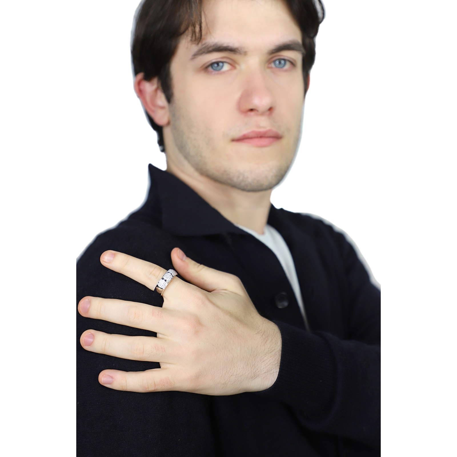 Bague Homme en Or Blanc 750 avec Diamants Naturels
