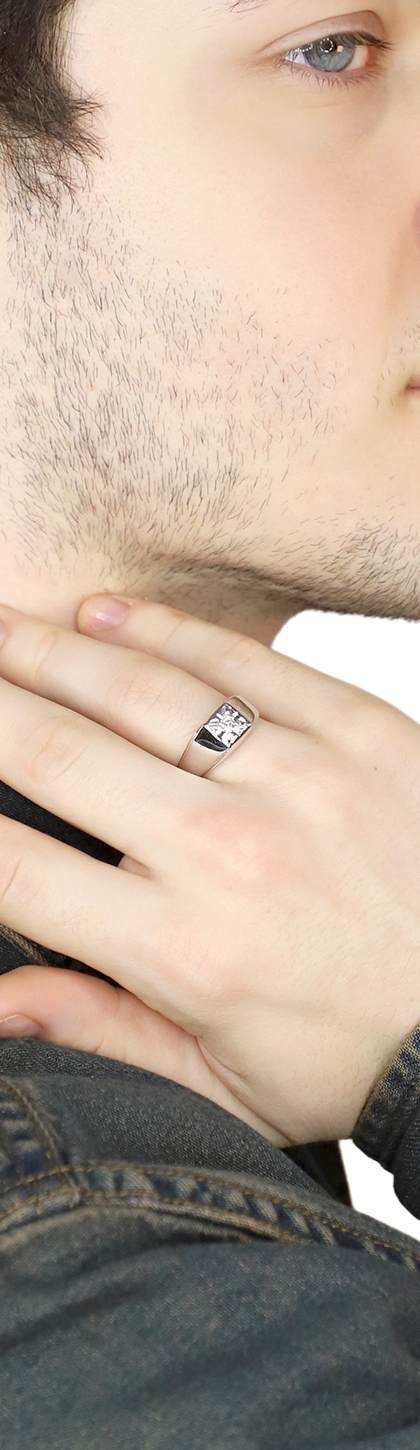 Anneau solitaire pour homme en or blanc 18k diamant 0,12 ct