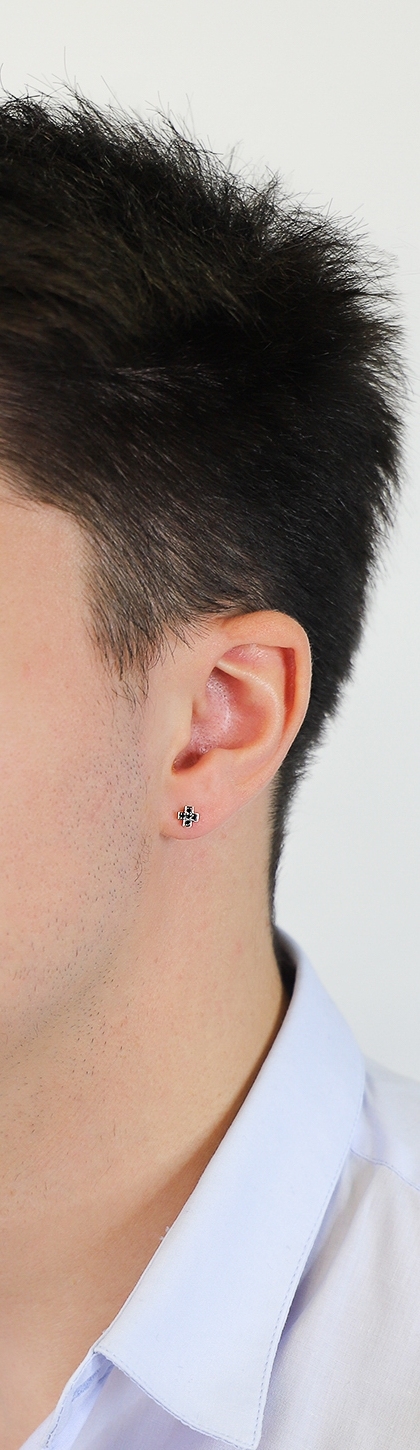 Boucle d'oreille mono en or rose 18 carats avec une croix en diamants noirs