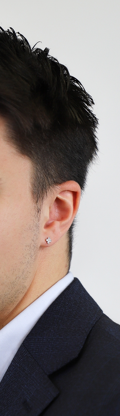Boucle d'oreille unique en croix en or blanc 18 carats avec des diamants