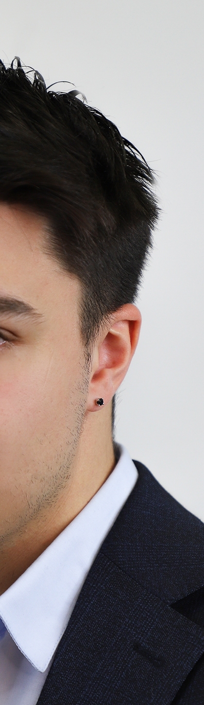 Boucle d'oreille individuelle or blanc 18k et diamant noir
