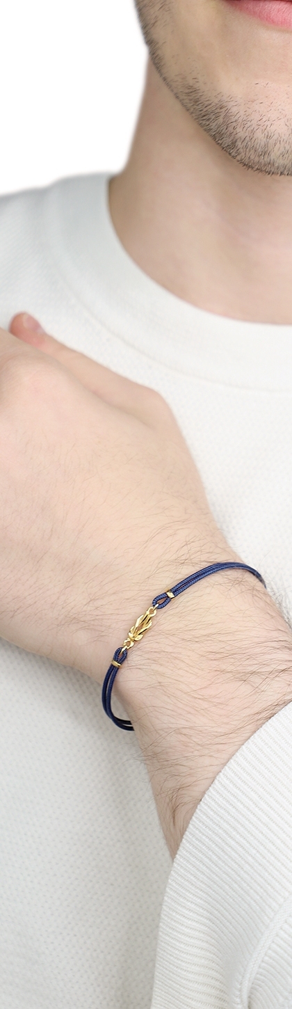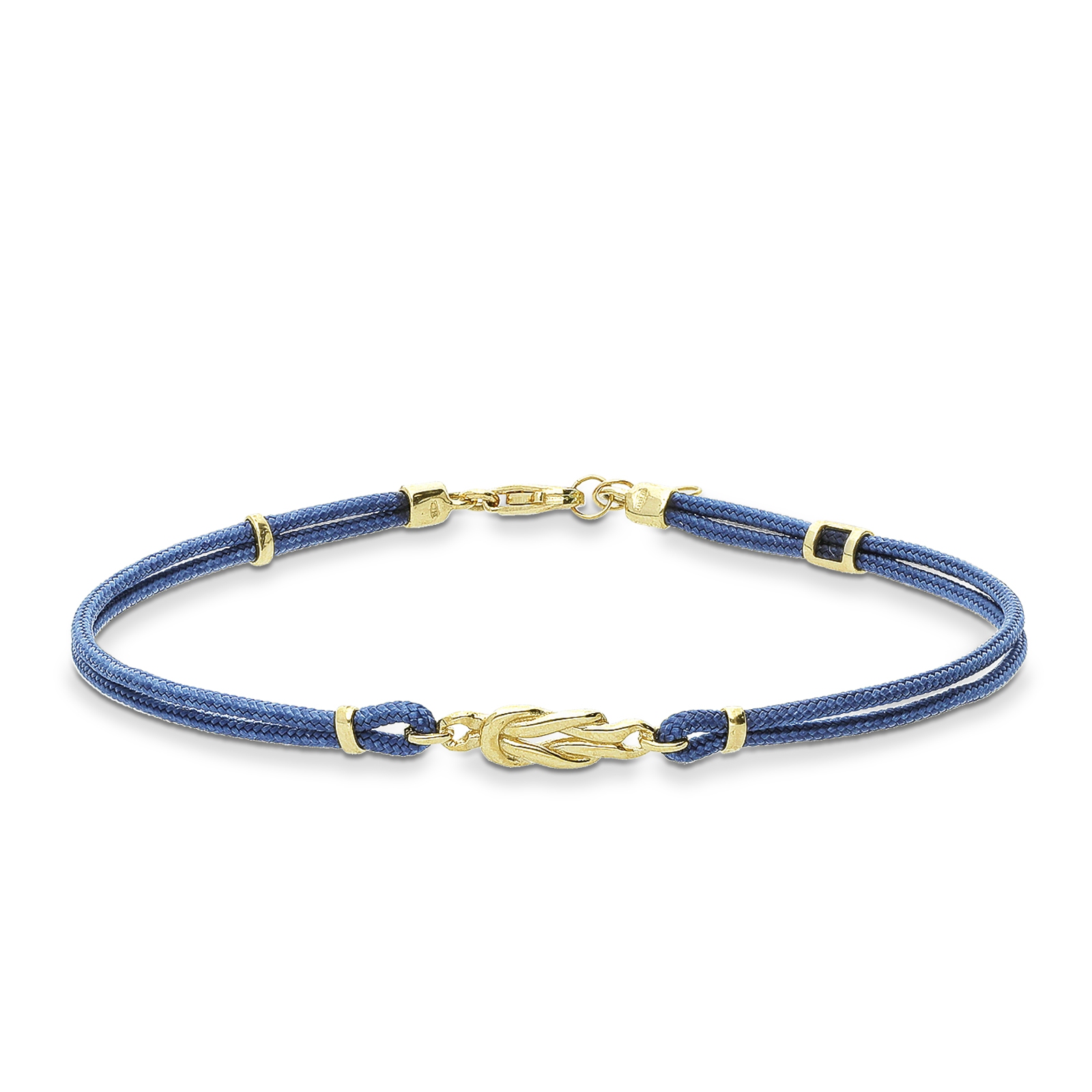 Bracelet en tissu bleu avec nœud en or jaune 18k