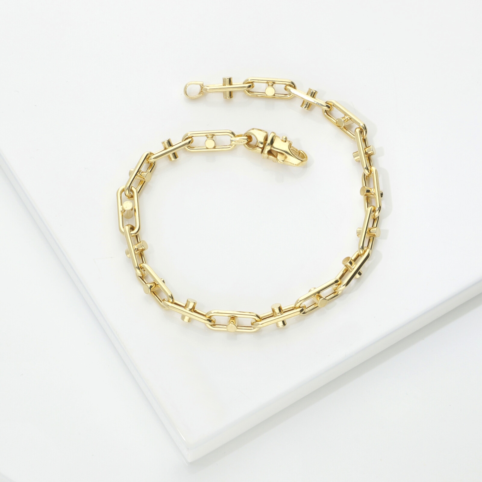 Bracelet chaîne en or jaune 18k avec design géométrique