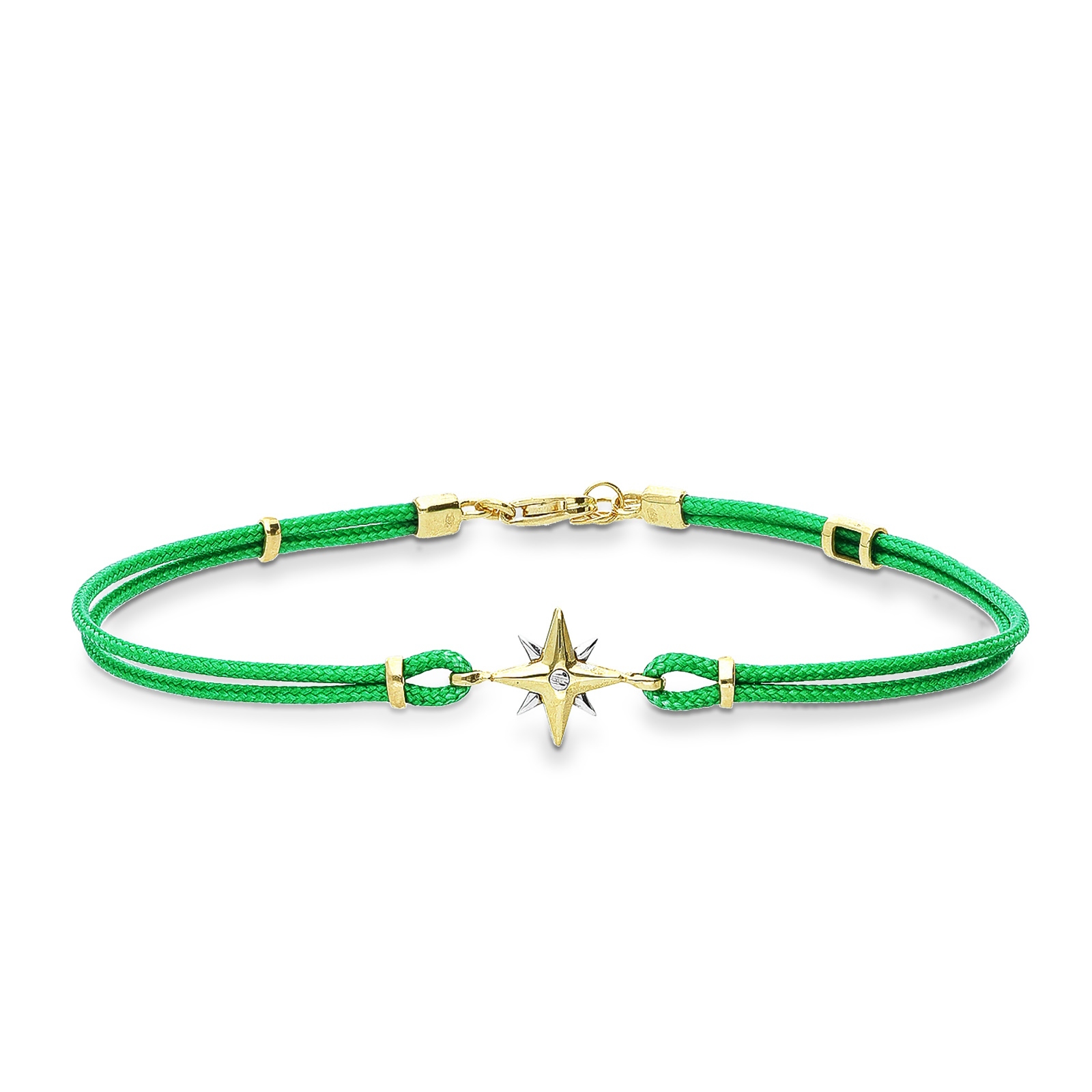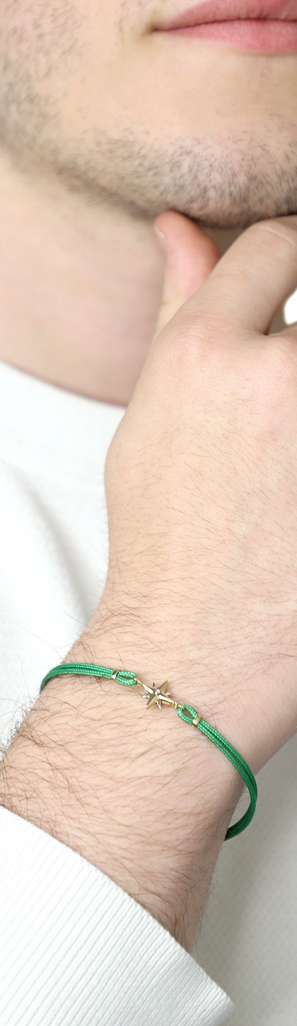 Bracelet en tissu vert et étoile en or jaune et blanc 18k