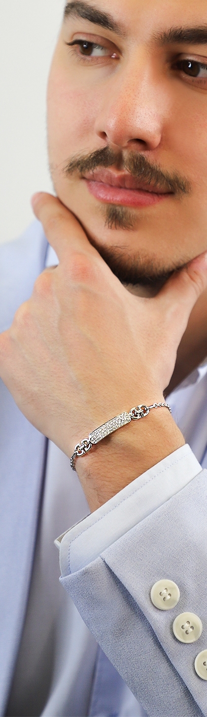 Bracelet en or blanc 18k avec barrette et zircons noirs