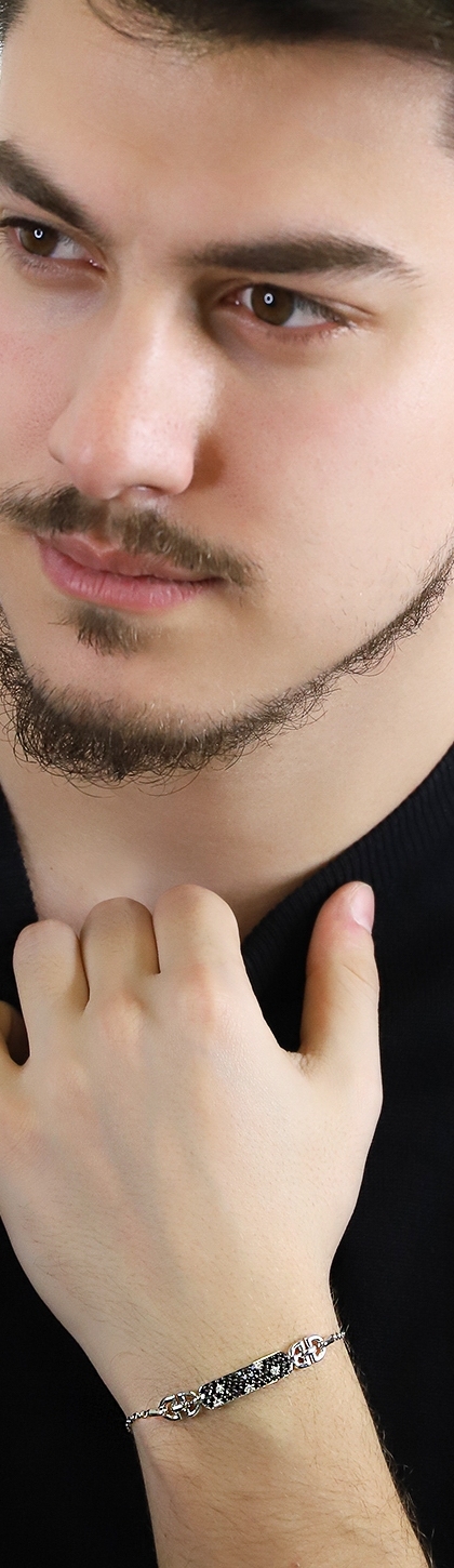 Bracelet homme en or blanc 18 carats avec diamants noirs et blancs