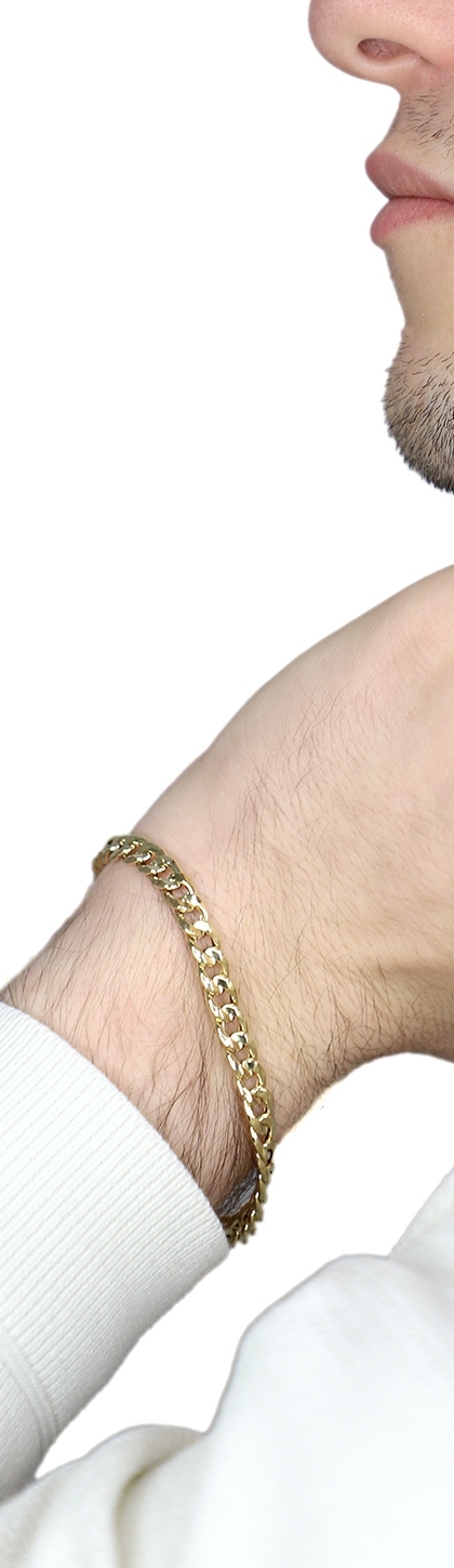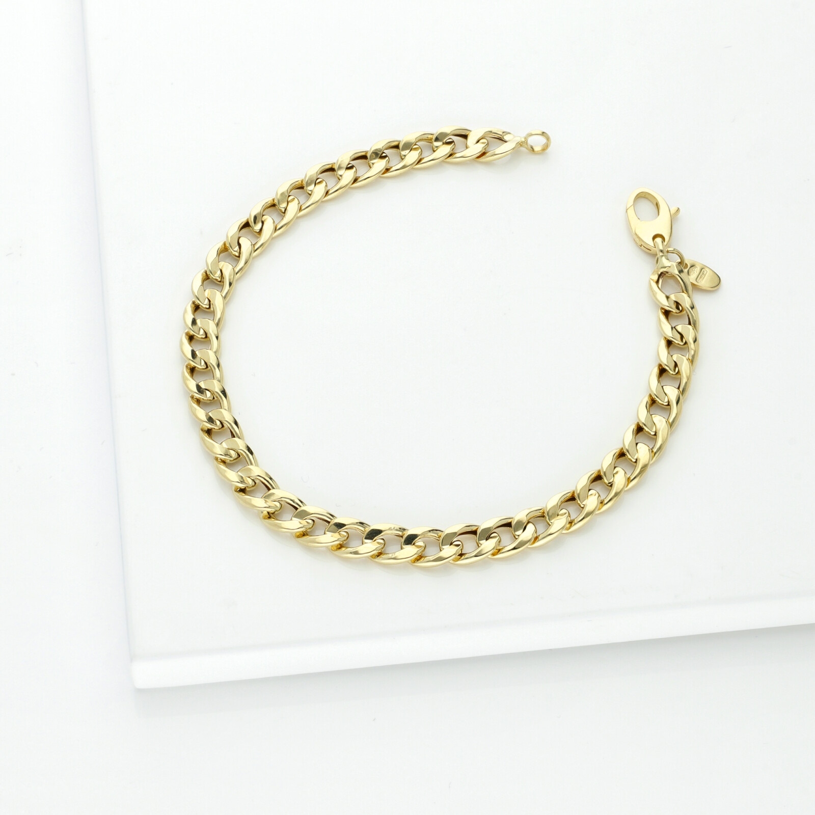 Bracelet gourmette à maille plate et brillante en or jaune 18k, longueur 19 cm. Un bijou élégant et intemporel, parfait pour sublimer tous vos looks quotidiens avec sophistication.
