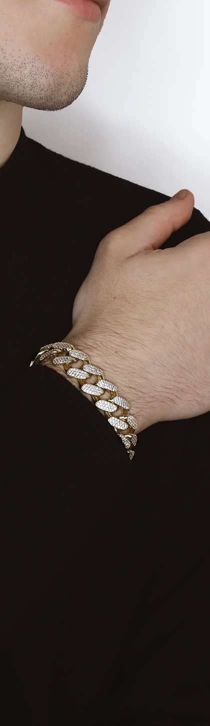 Bracelet homme en or jaune 18K avec zircons
