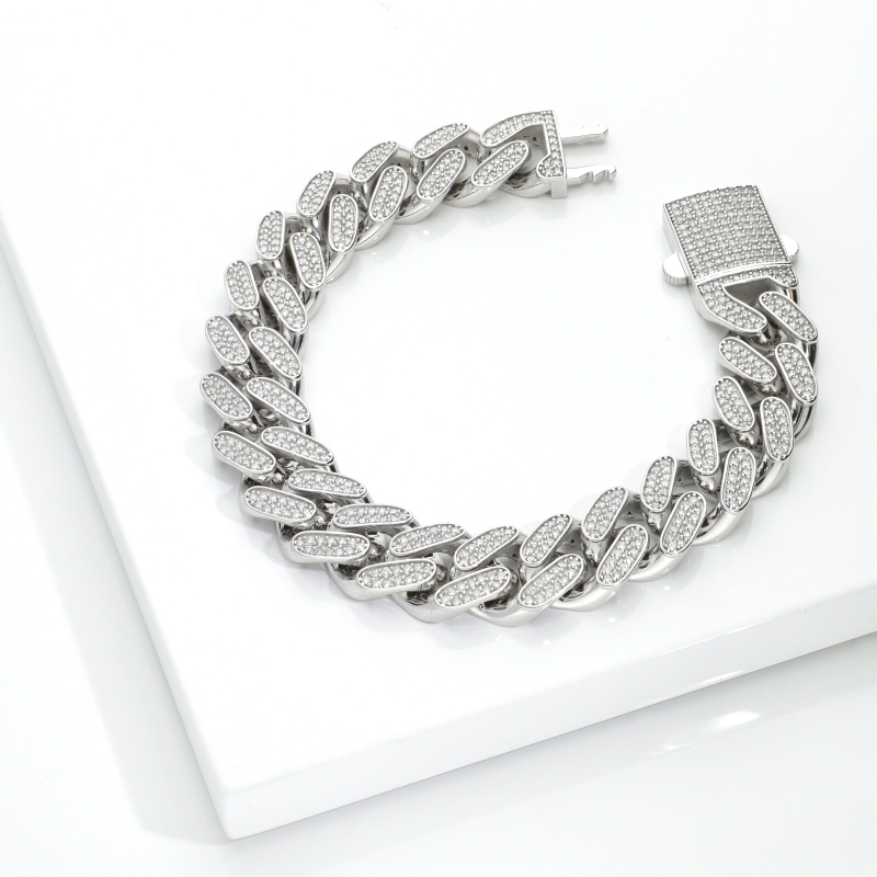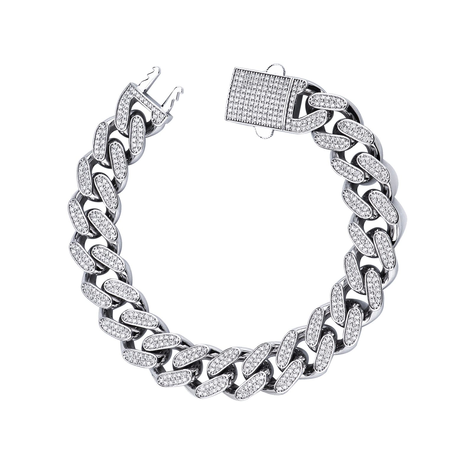 Bracelet unisex Cuban link en or blanc 18k avec diamants