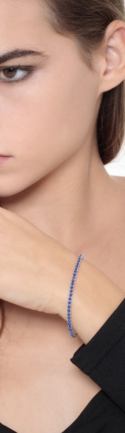 Bracelet avec saphirs bleus Tennis en or blanc 750
