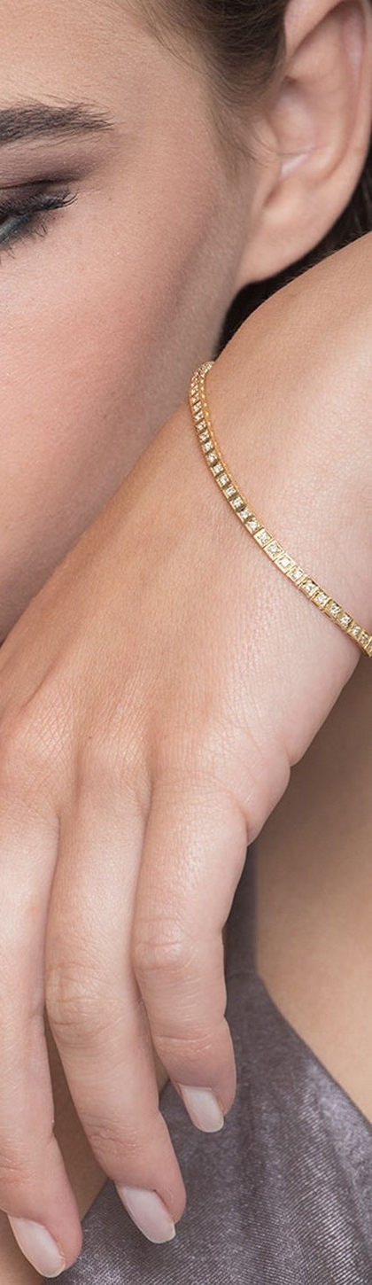 Bracelet carré en or jaune 18k serti de diamants