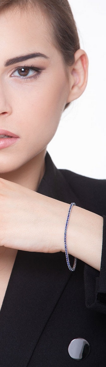 Bracelet en or blanc 18k Tennis avec saphirs bleus