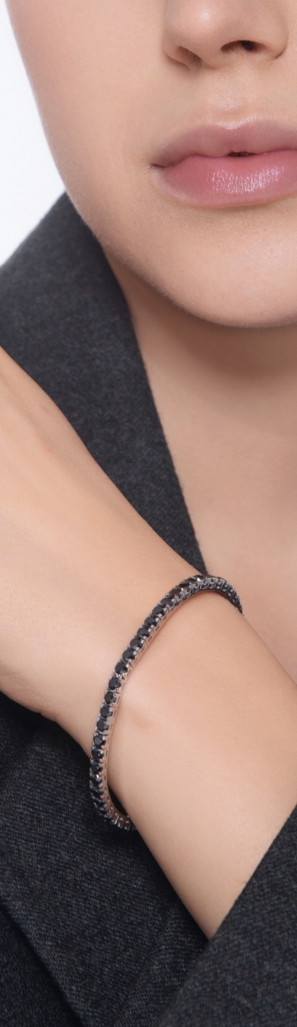 Bracelet riviere en or blanc 18k serti de diamants noirs 7,23 ct
