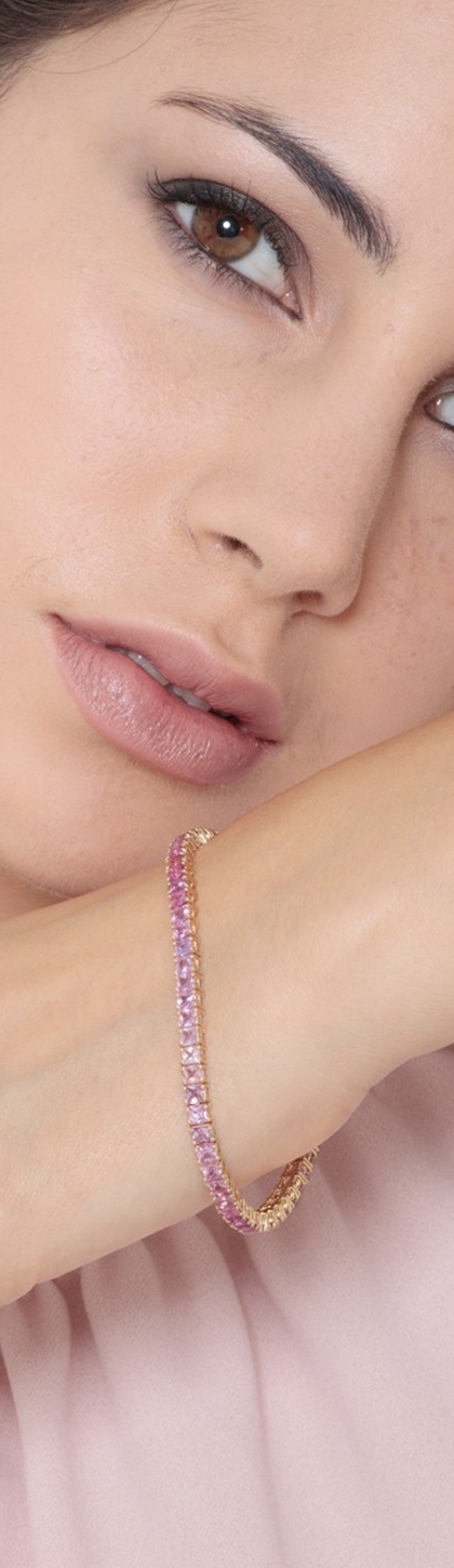 Bracelet Rivière en or jaune 18 carats avec saphirs roses