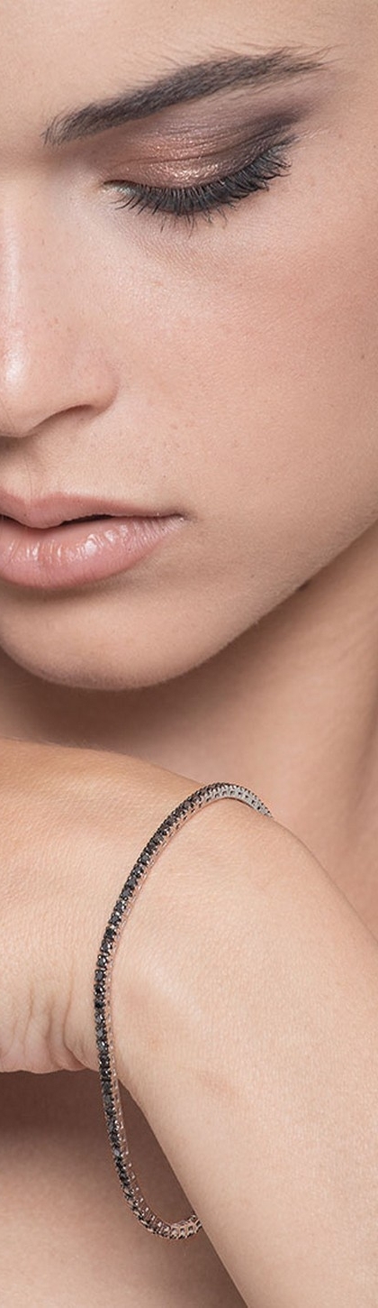 Bracelet tennis à griffes en or blanc 18k avec diamants noirs