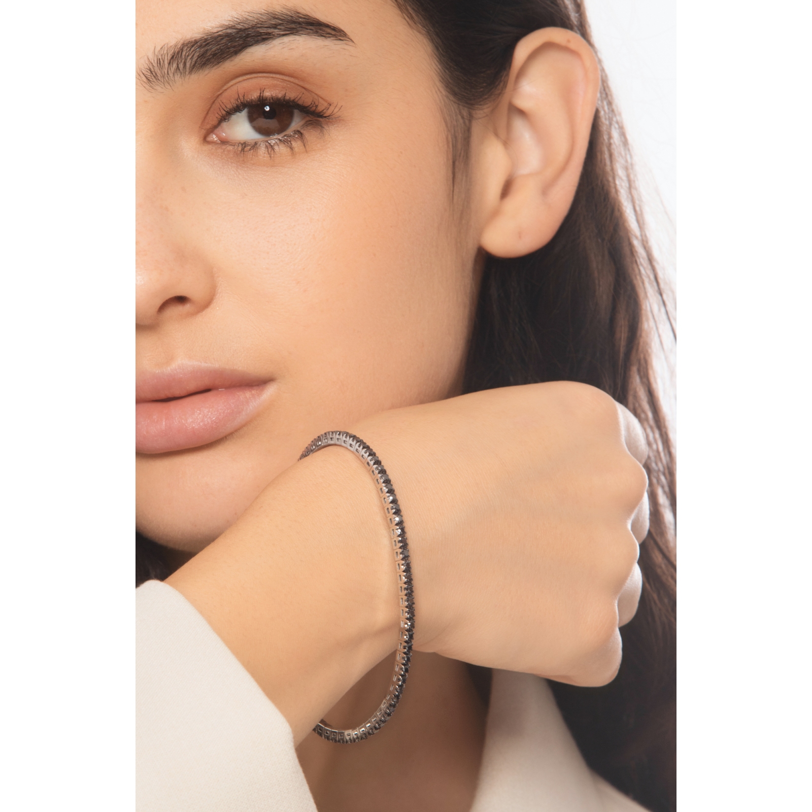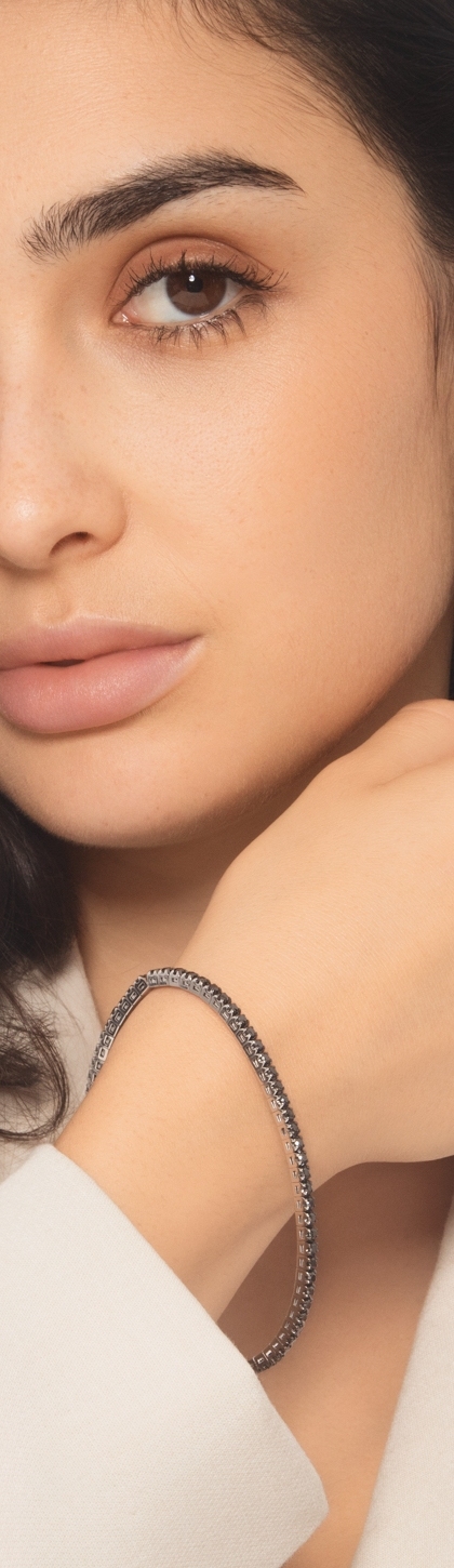 Bracelet tennis elastique avec diamants noirs en or blanc 750