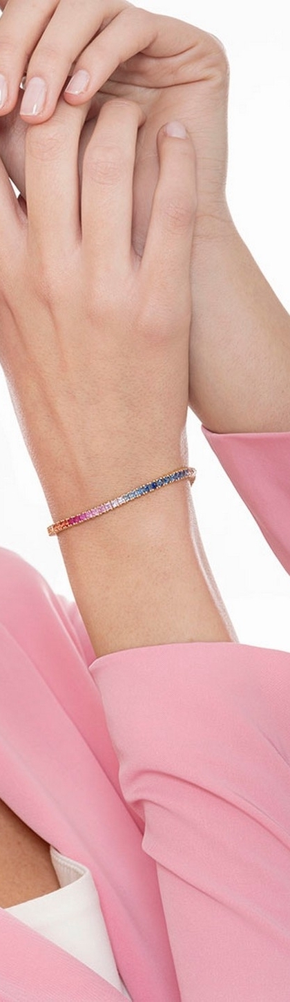 Bracelet tennis en fil d'or jaune 18k avec saphirs multicolores