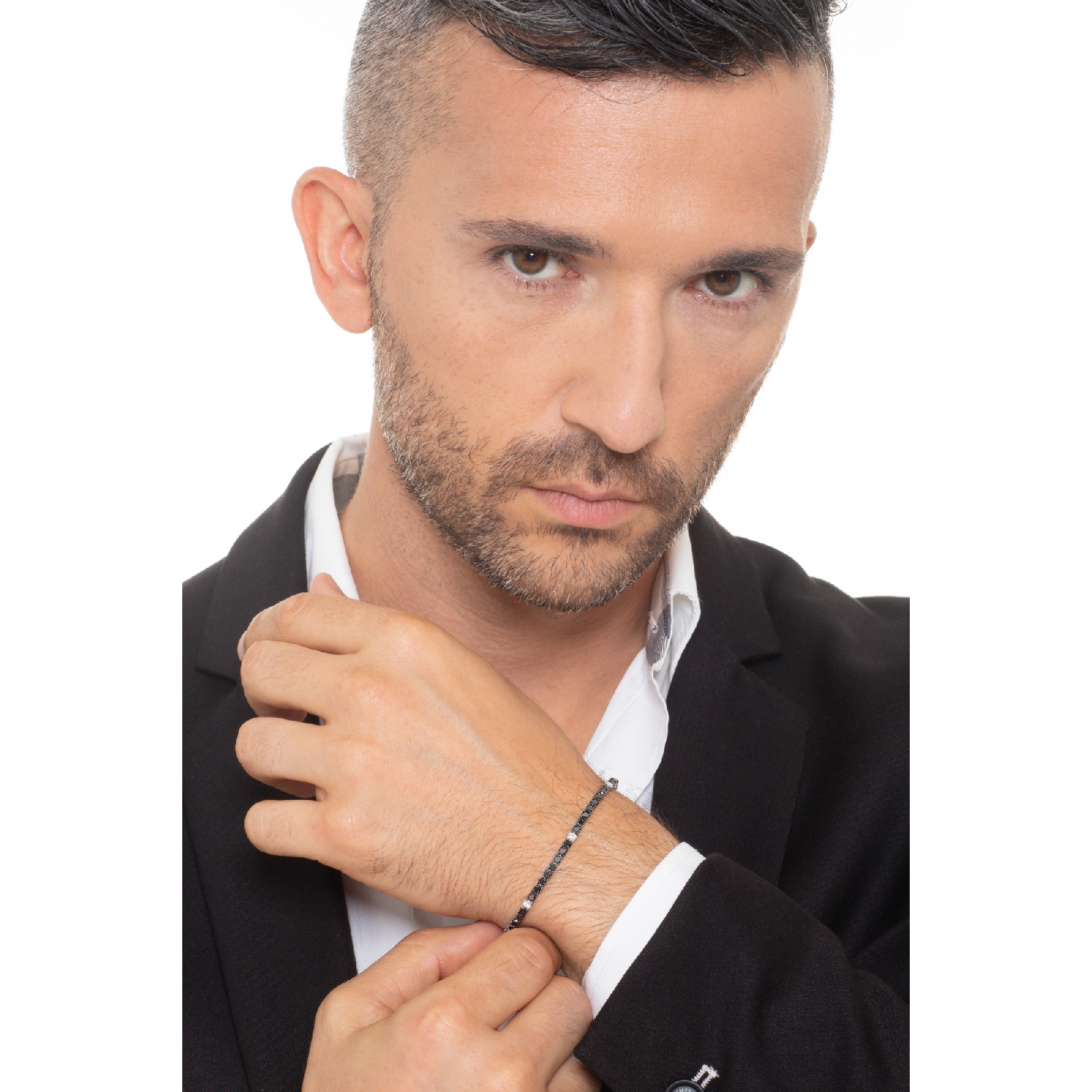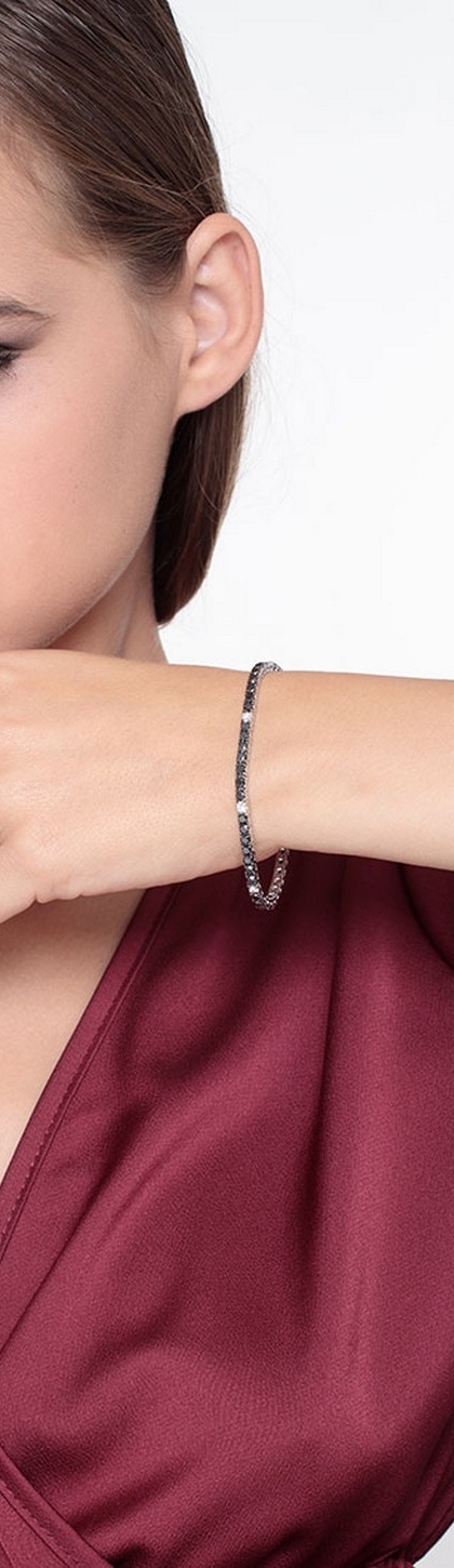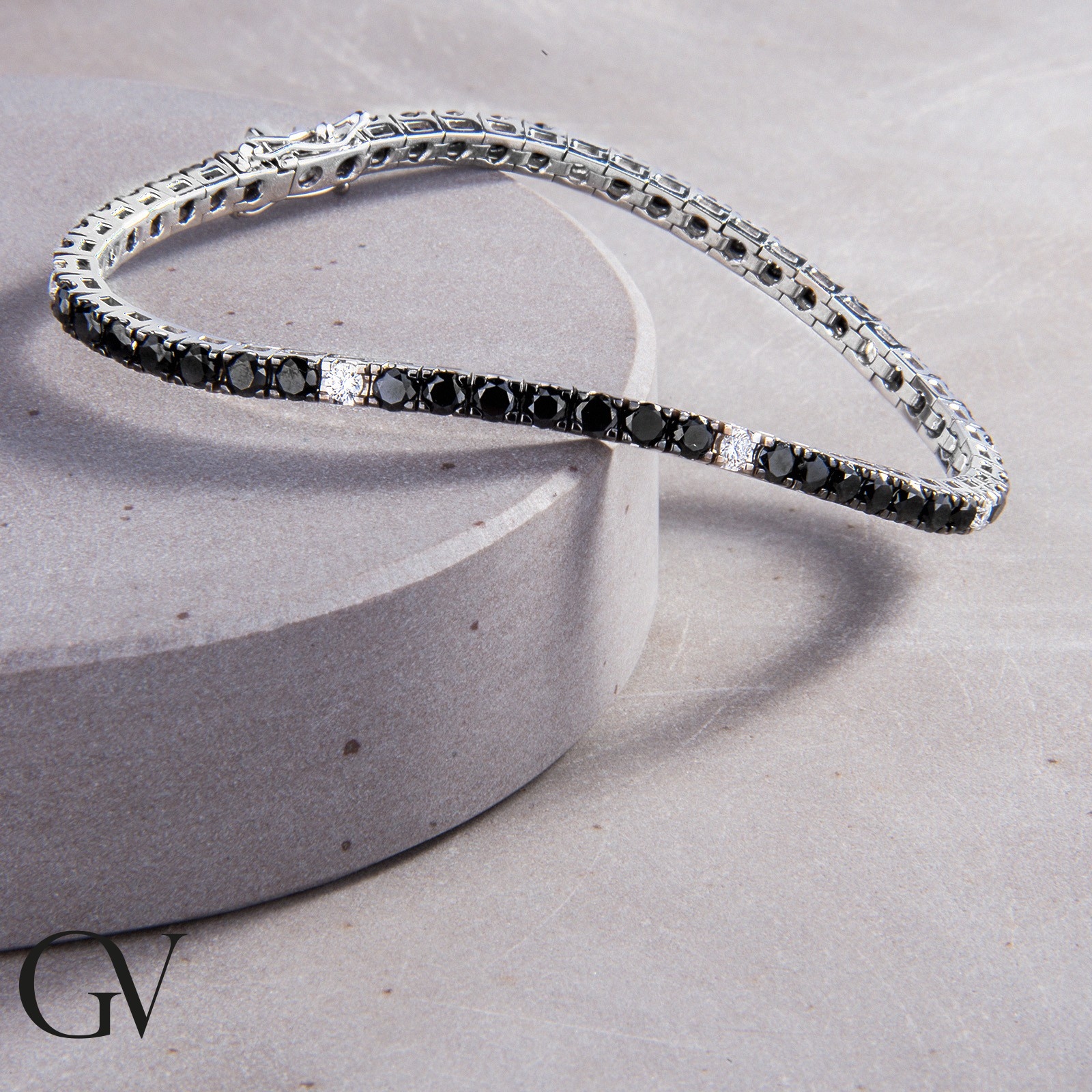 Bracelet Tennis en Or Blanc 18k avec Diamants Noirs et Blancs