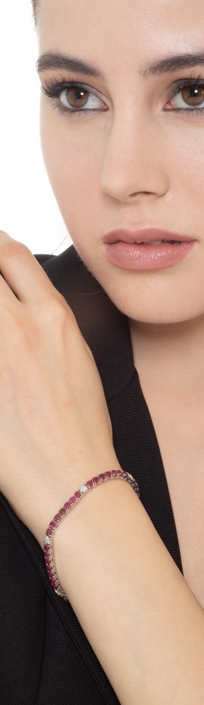 Bracelet tennis en or blanc 18K avec rubis et diamants