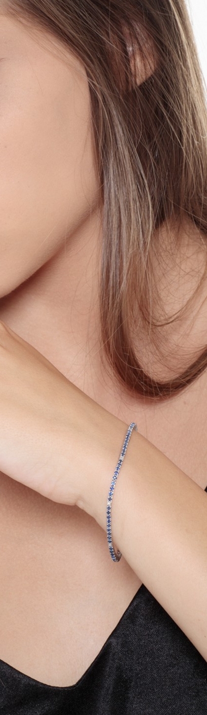 Bracelet Tennis en or blanc 18k avec saphirs bleus et diamants