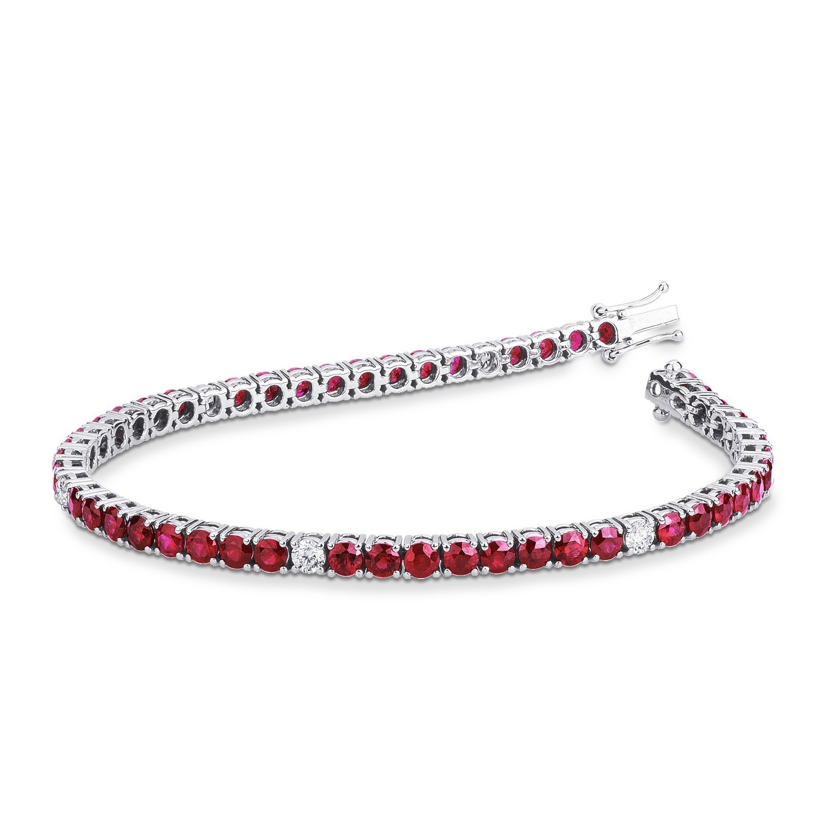Bracelet Tennis en Or Blanc 18k Diamants avec Rubis