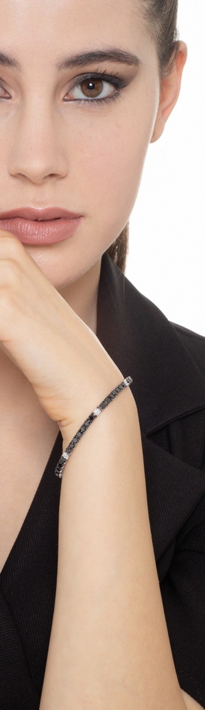 Bracelet tennis en or blanc 18k serti de diamants noirs alternés avec des diamants