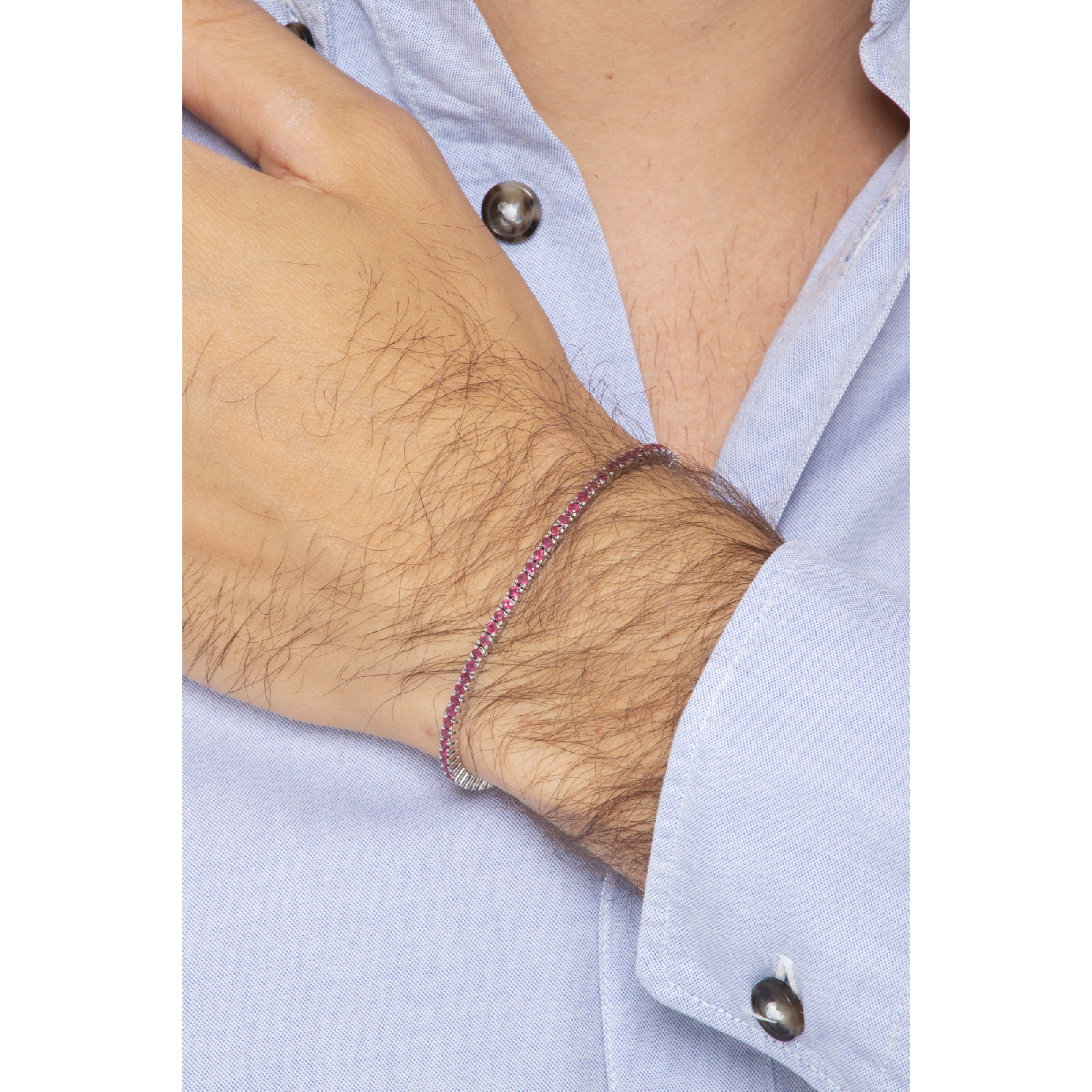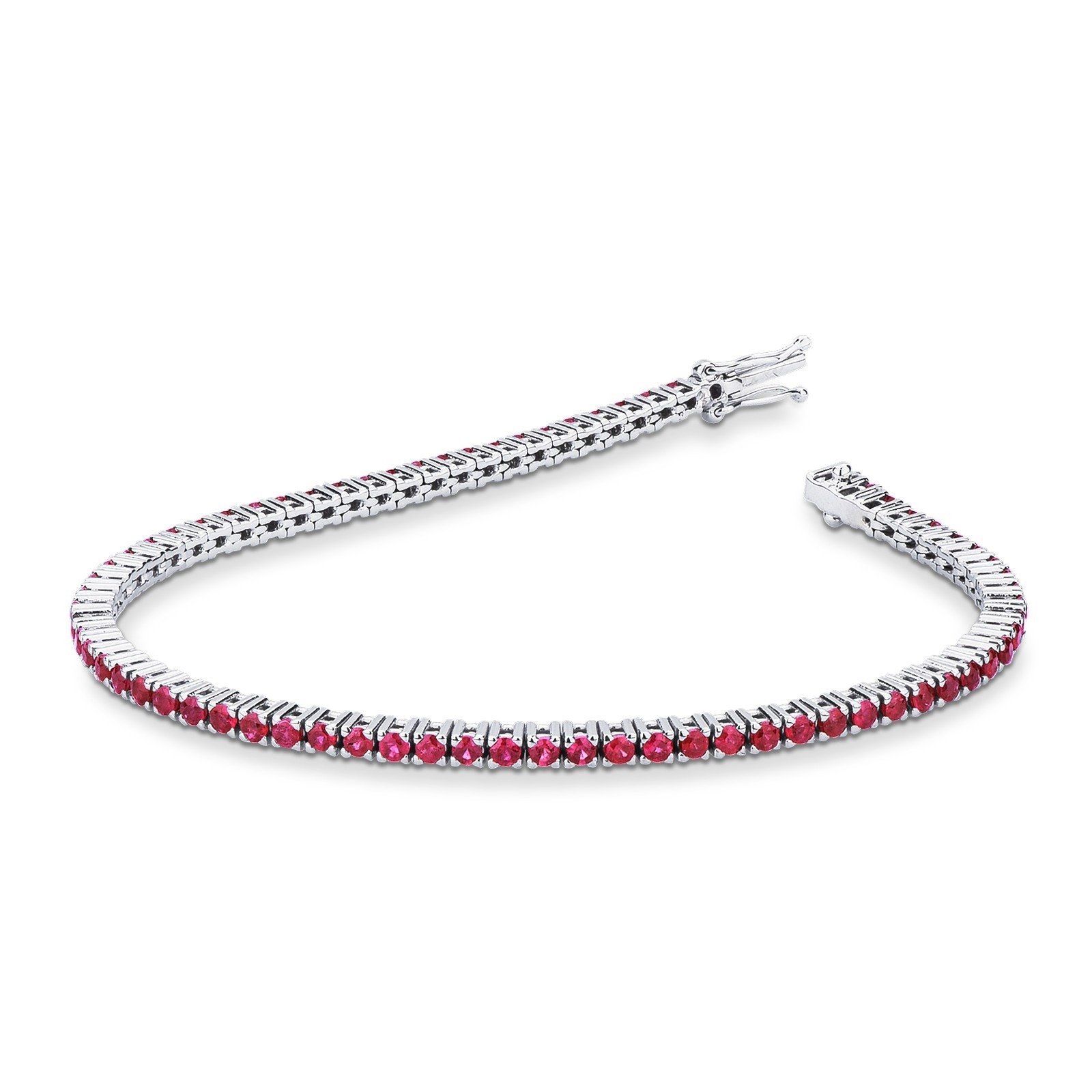 Bracelet Tennis fin en or blanc 18k avec rubis