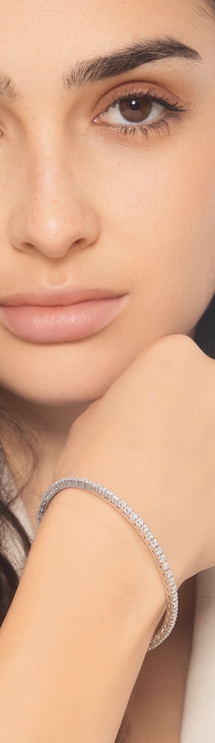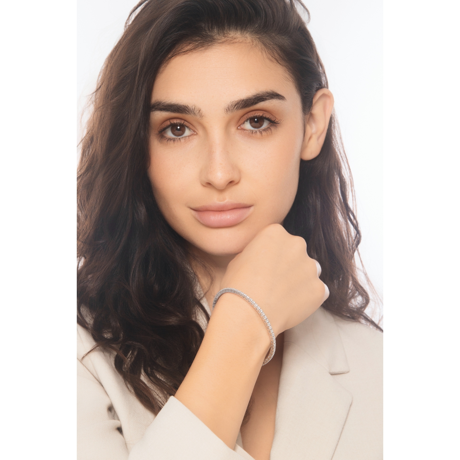 Bracelet tennis griffe elastique en or blanc 750 avec diamants