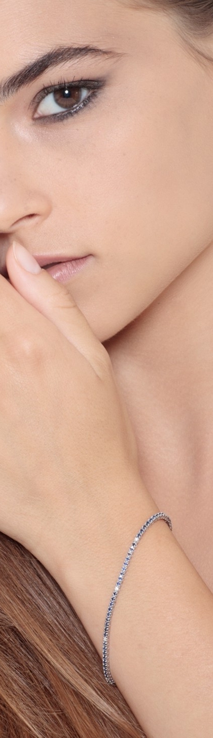 Bracelet tennis griffes en or blanc 18K avec saphirs bleus et diamants