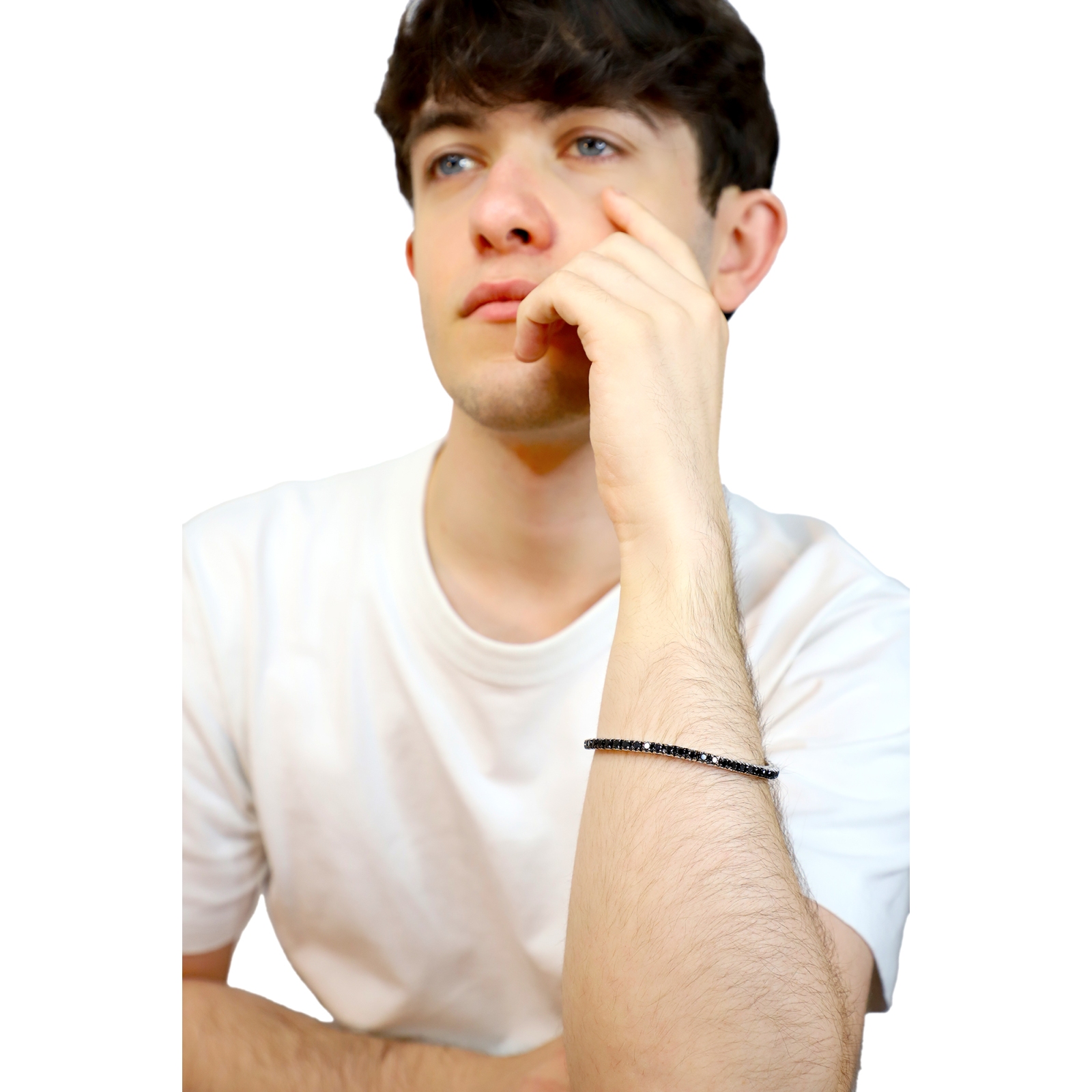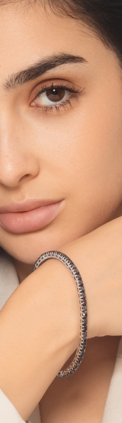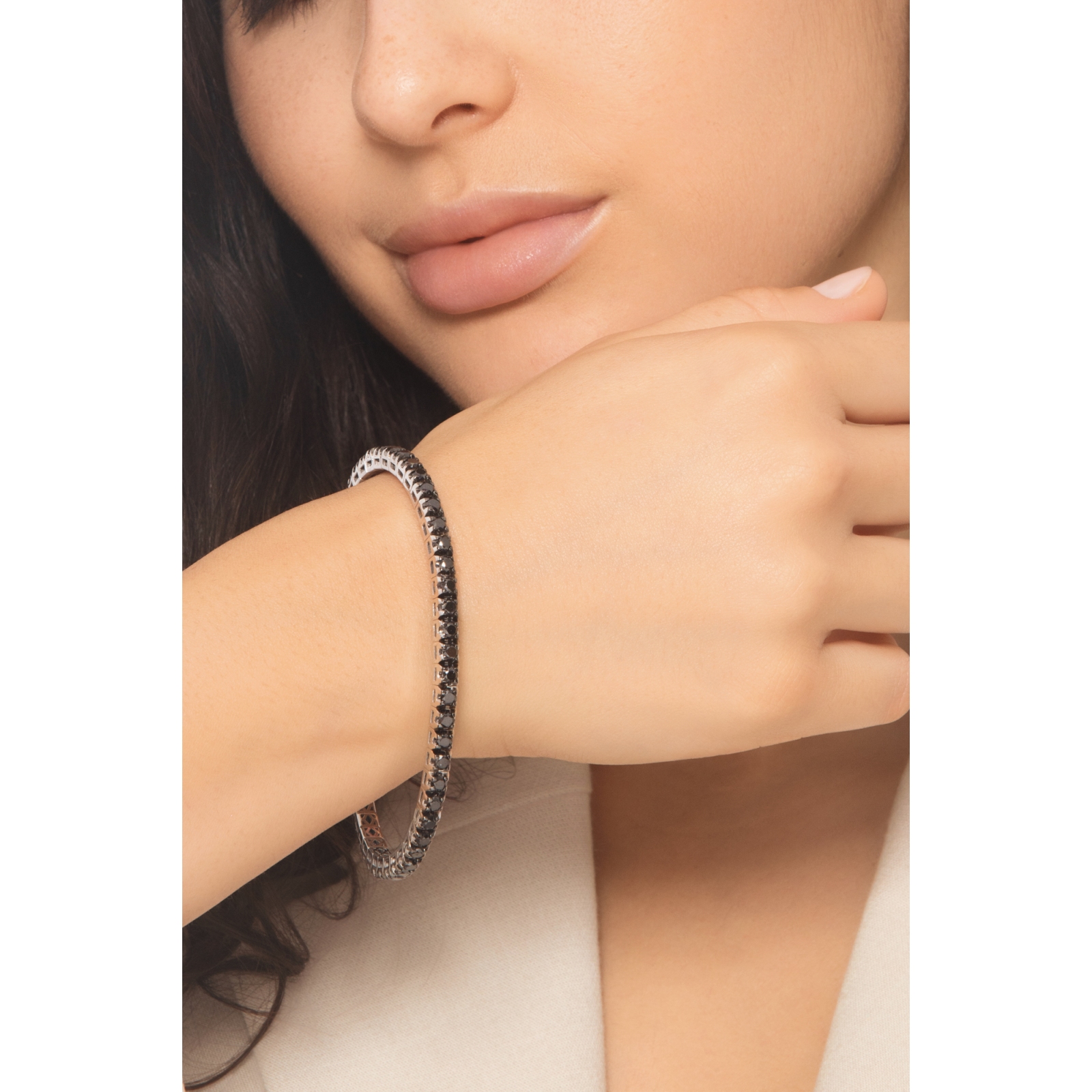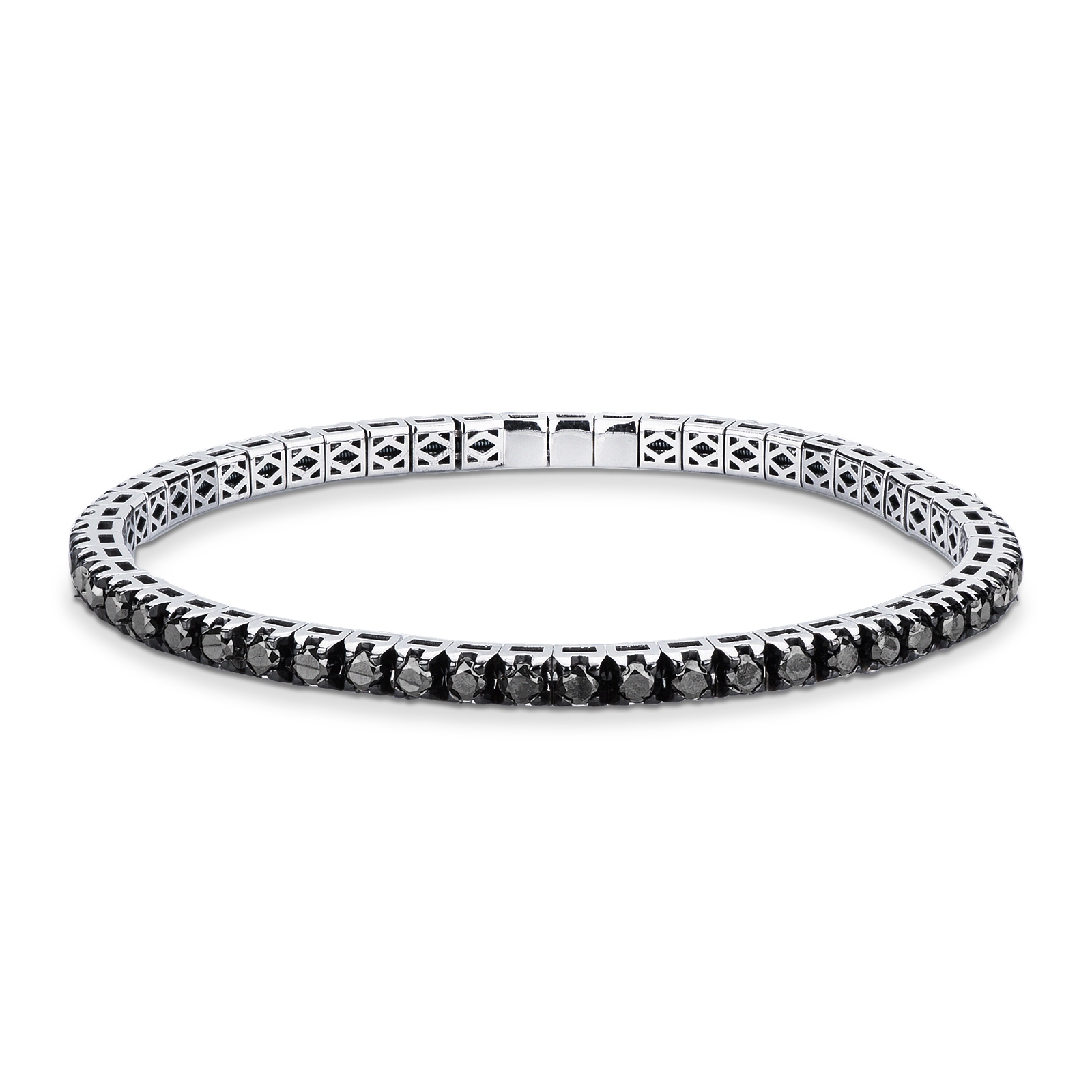 Bracelet tennis élastique en or blanc 18k avec diamants noirs