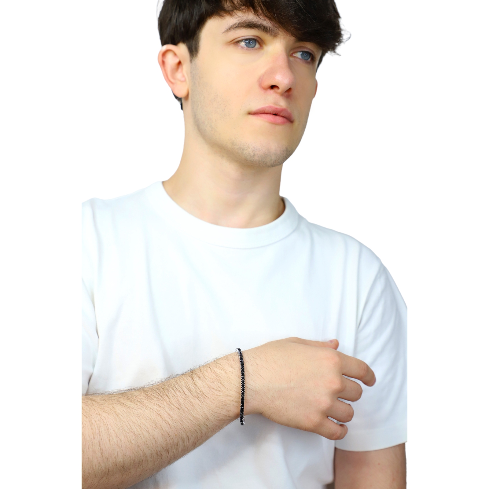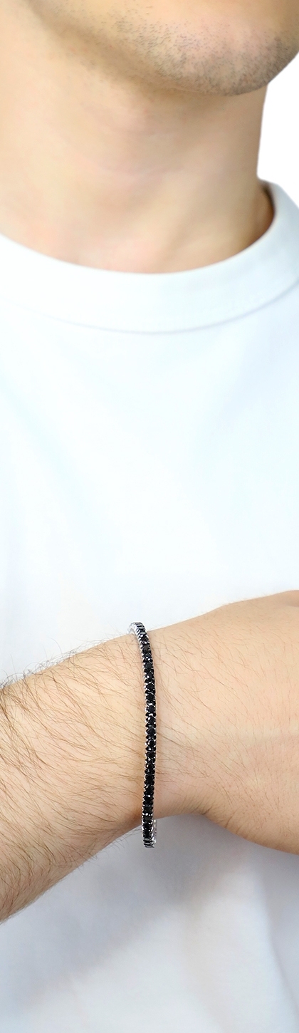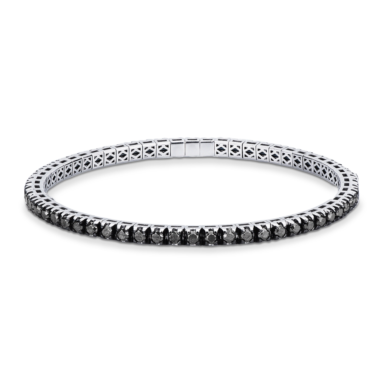 Bracelet tennis élastique griffé avec diamants noirs en or blanc 18k