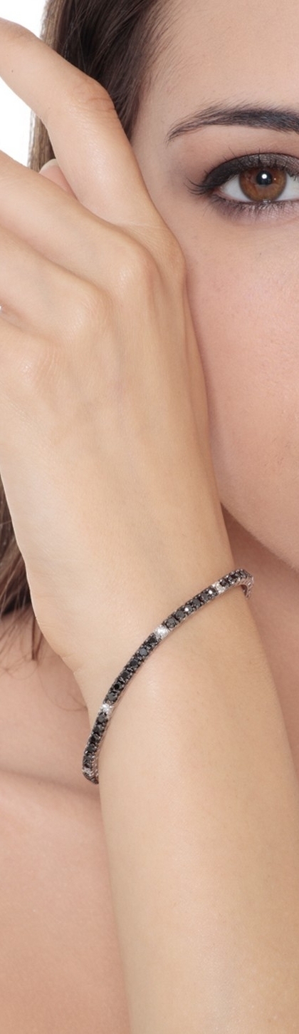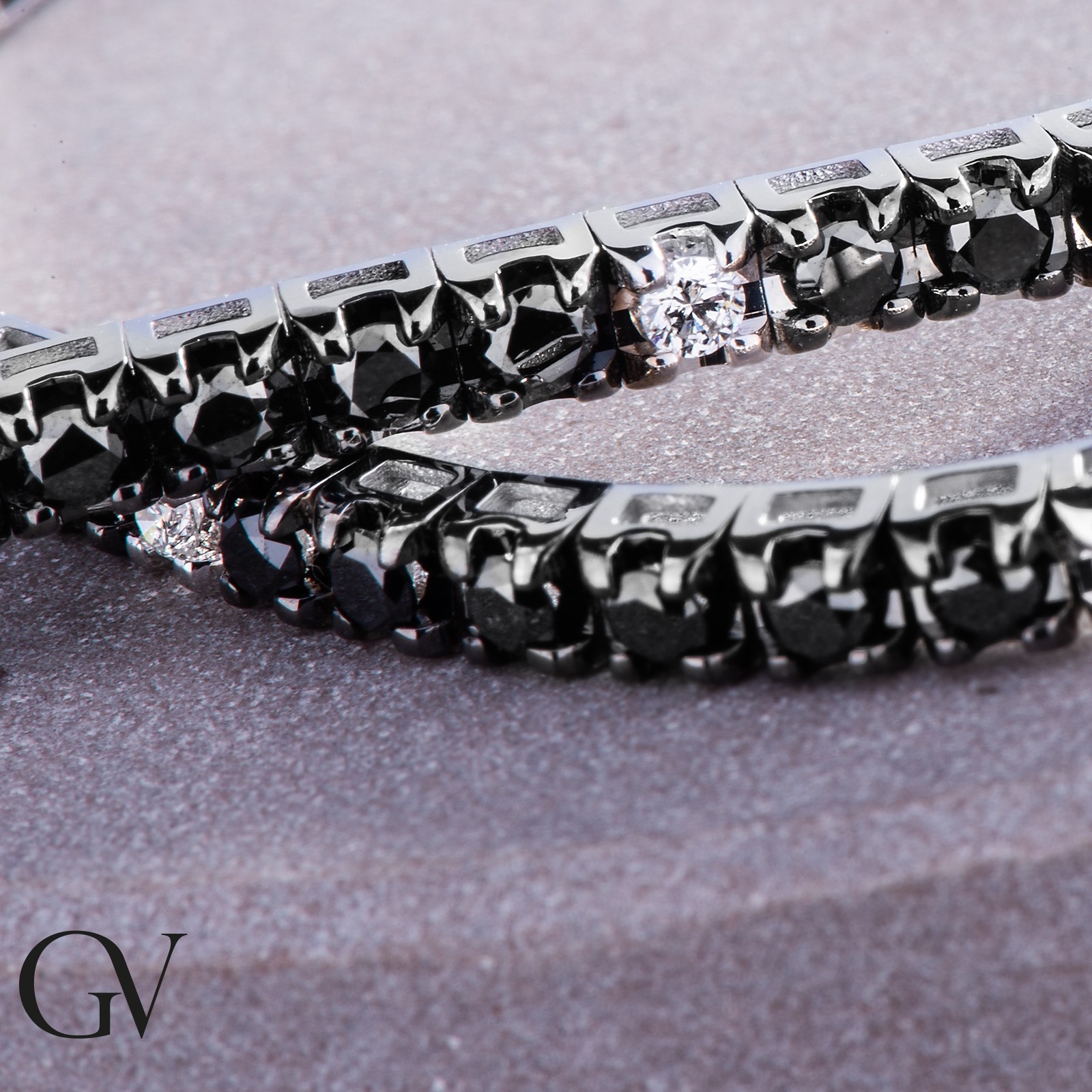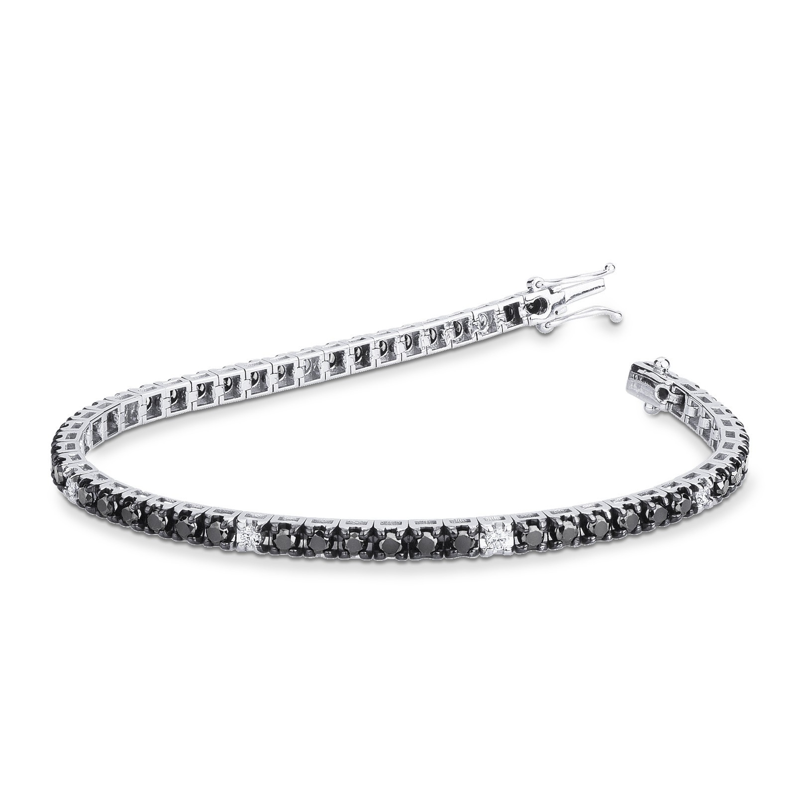 Bracelet Tennis Or Blanc 18k avec Diamants Noirs et Blancs