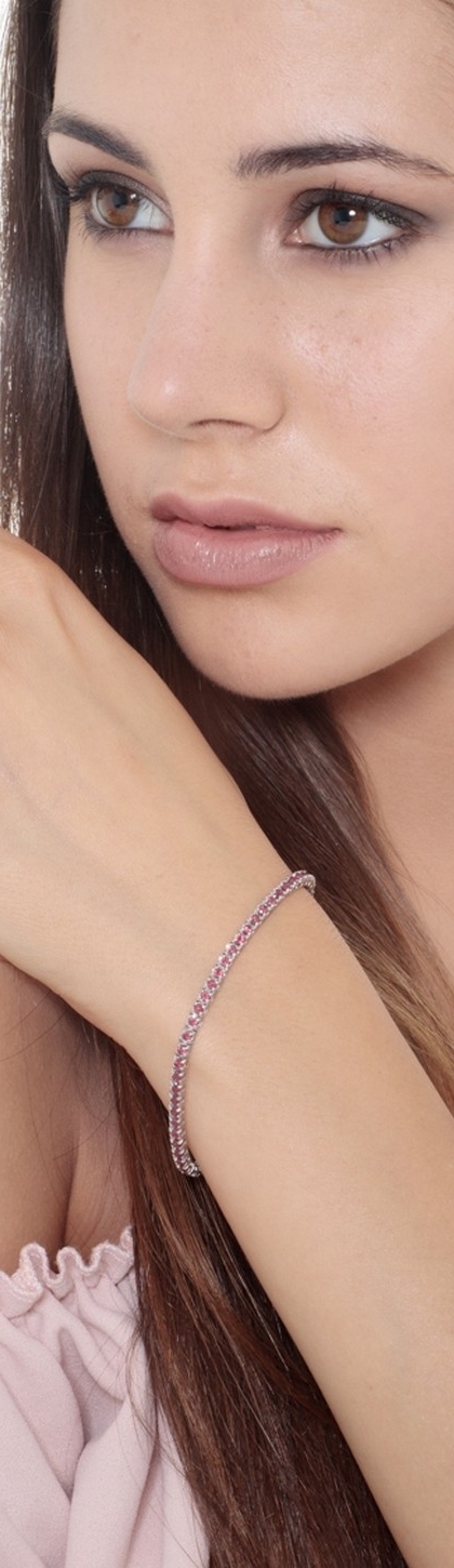 Bracelet Tennis Or Blanc 18k serti de Rubis éclatants