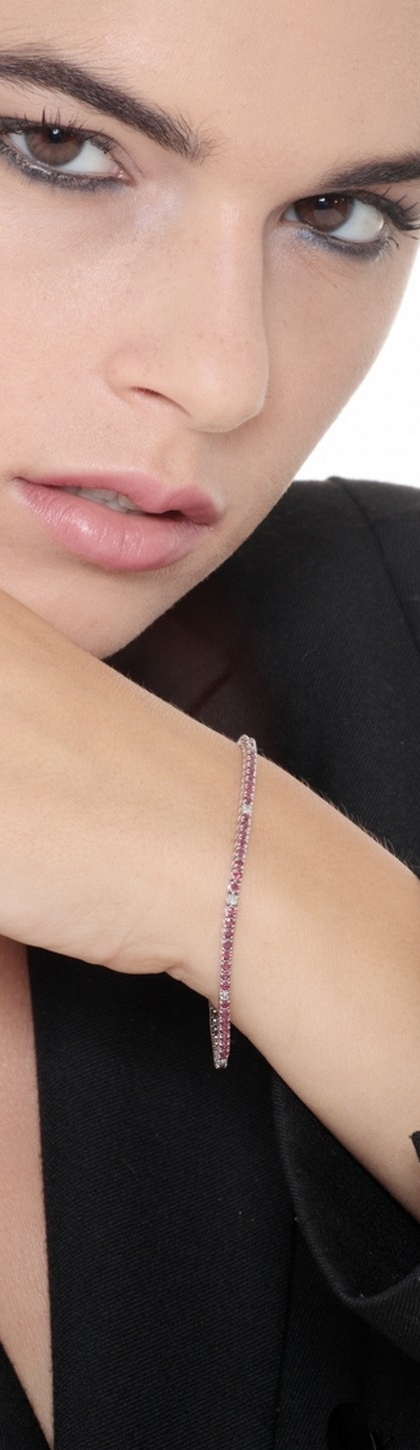 Bracelet Tennis or blanc 750 avec rubis et diamants
