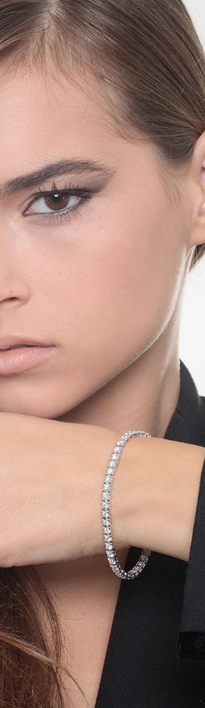 Bracelet tennis en or blanc 18k serti de diamants de couleur H et de pureté VS. Le carat peut varier en fonction de la taille du bracelet. La largeur de la maille est d'environ 3,70 mm.